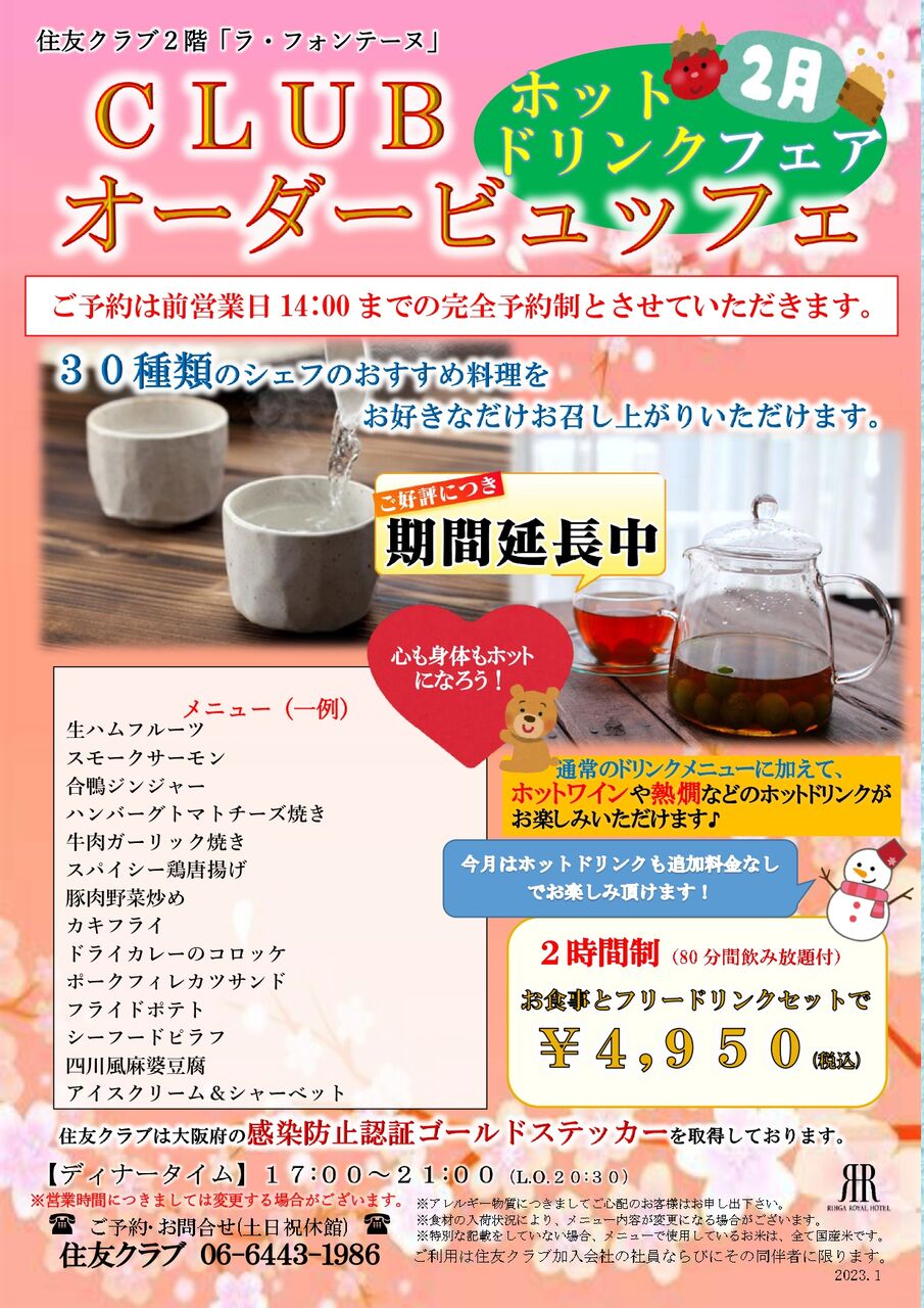 CLUBオーダービュッフェのホットドリンクフェアが今月は追加料金なしでお楽しみ頂けます