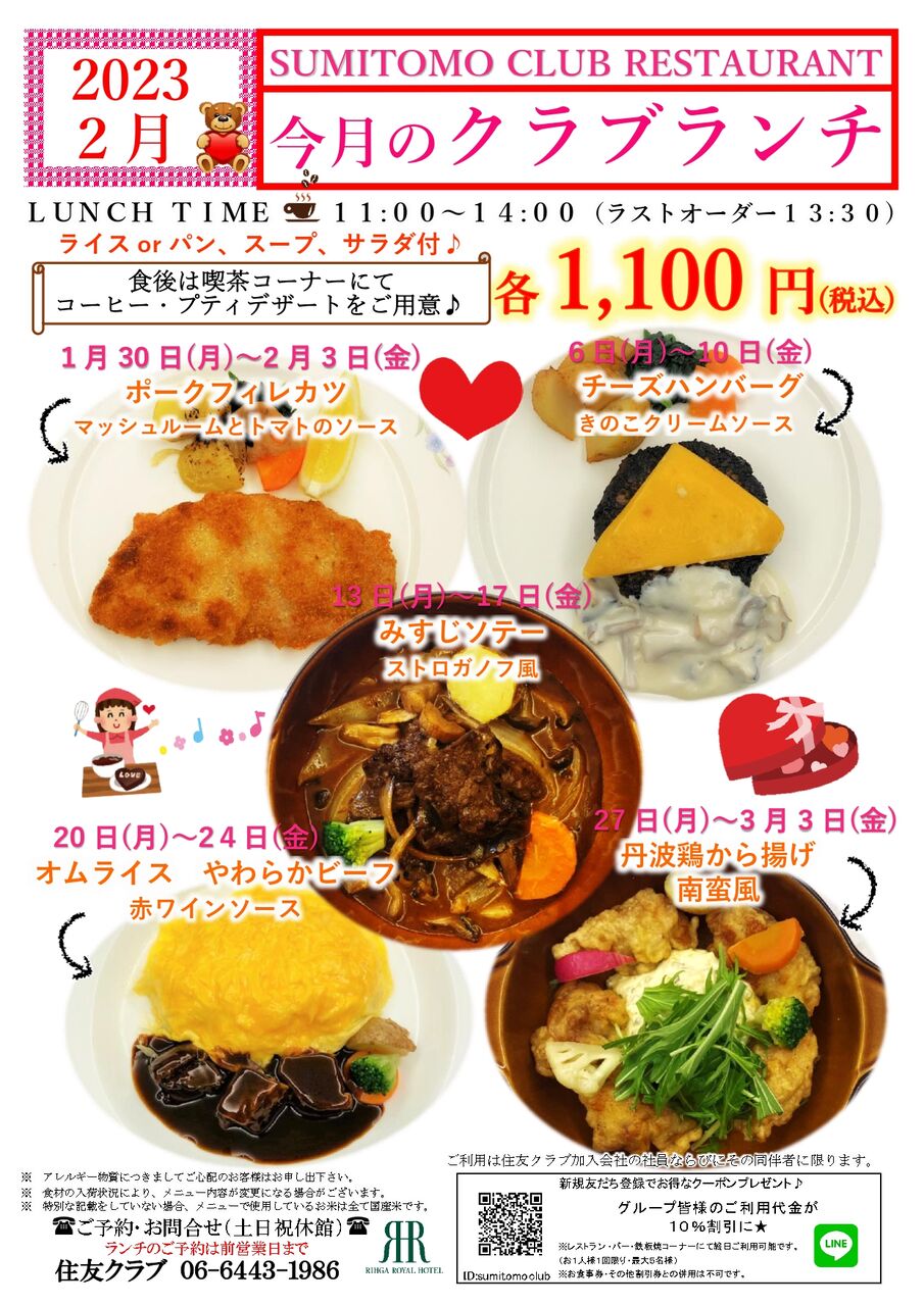さて、2月のクラブでのイベント・お料理のご紹介です