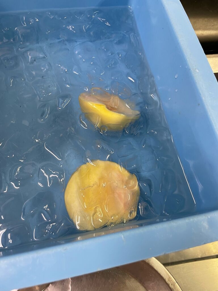 その間に桃を湯むきして氷水で冷やします