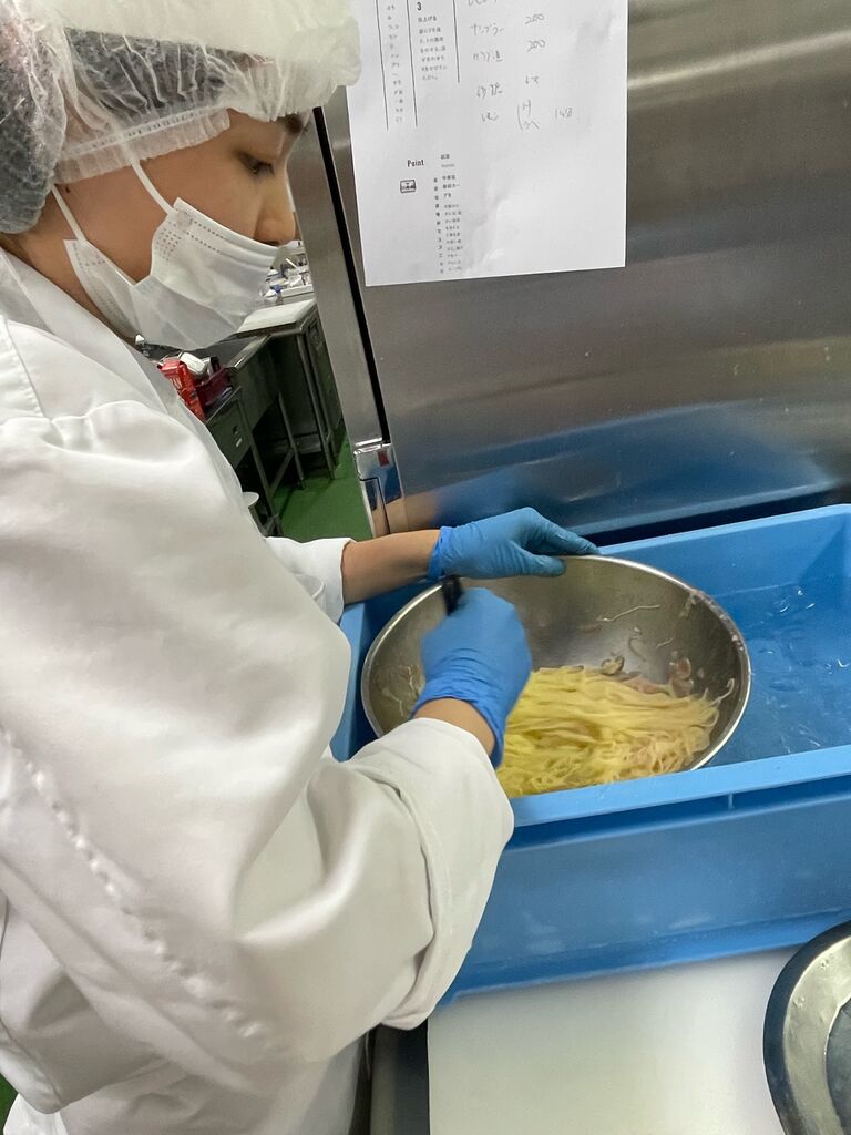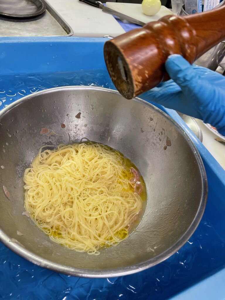 今回はカッペリーニという普段のパスタより細いパスタを使っています