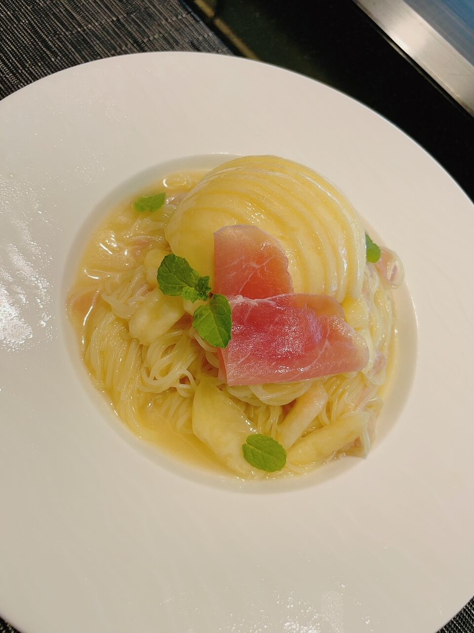 こちらの桃と生ハムのカッペリーニ