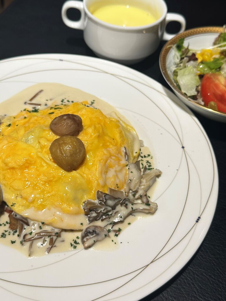 今回ご紹介したこちらのきのことベーコンイタリア産栗オムライス~きのこクリームソース~は、10月13日(金)までのご提供です
