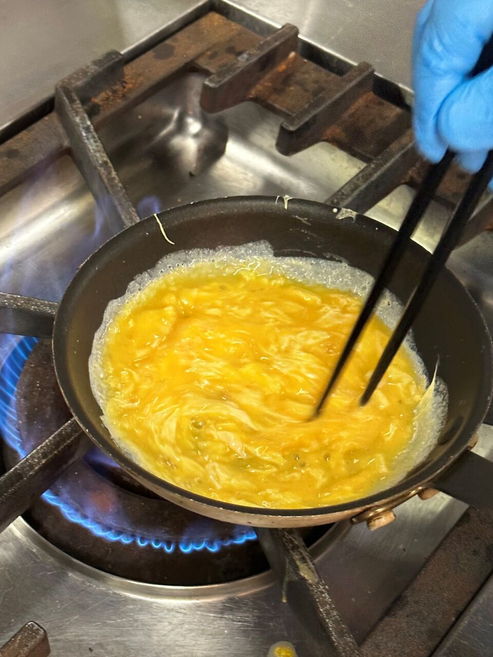河山さん「フライパンを揺らして、お箸でかき混ぜながら焼いていくのがポイントです