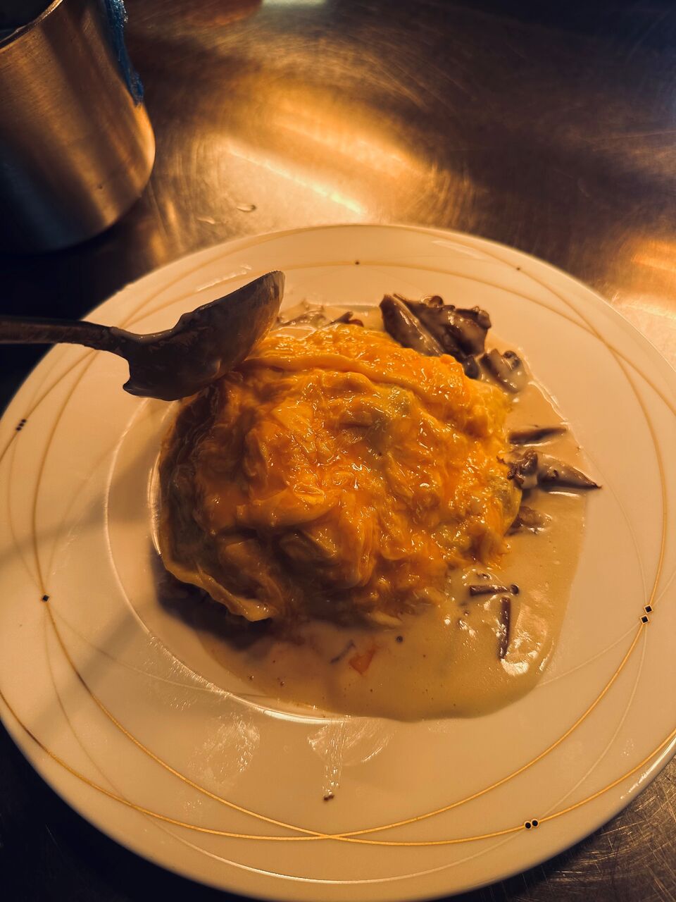 中に生クリームと、マッシュルームなどたっぷりのきのこが入っているそうです