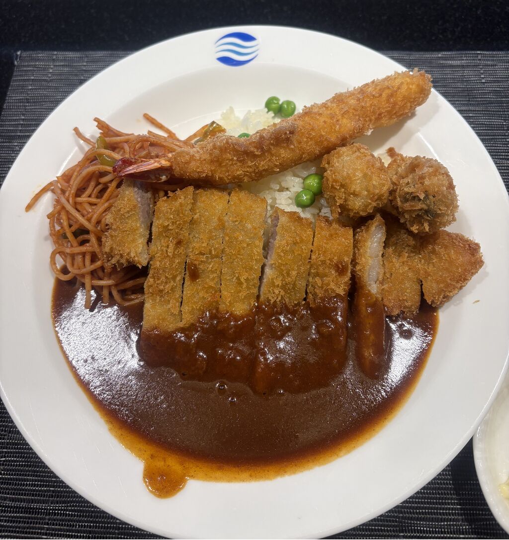 今週のクラブランチ『トルコライス』にエビフライとカキフライをトッピングしてしまいました