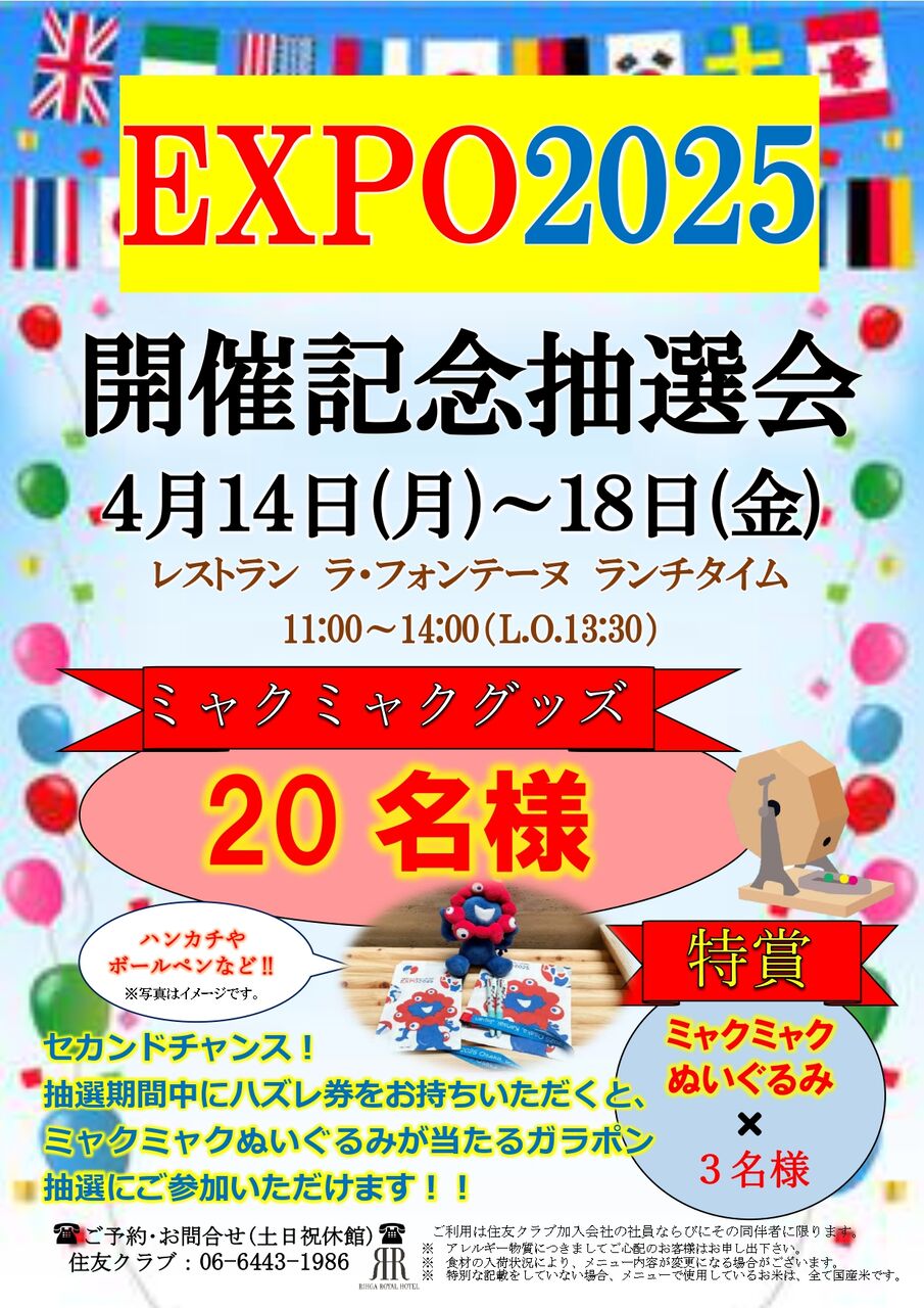 EXPO開催期間中に大人気ミャクミャク抽選会第2弾!が出来ると良いなと考えております