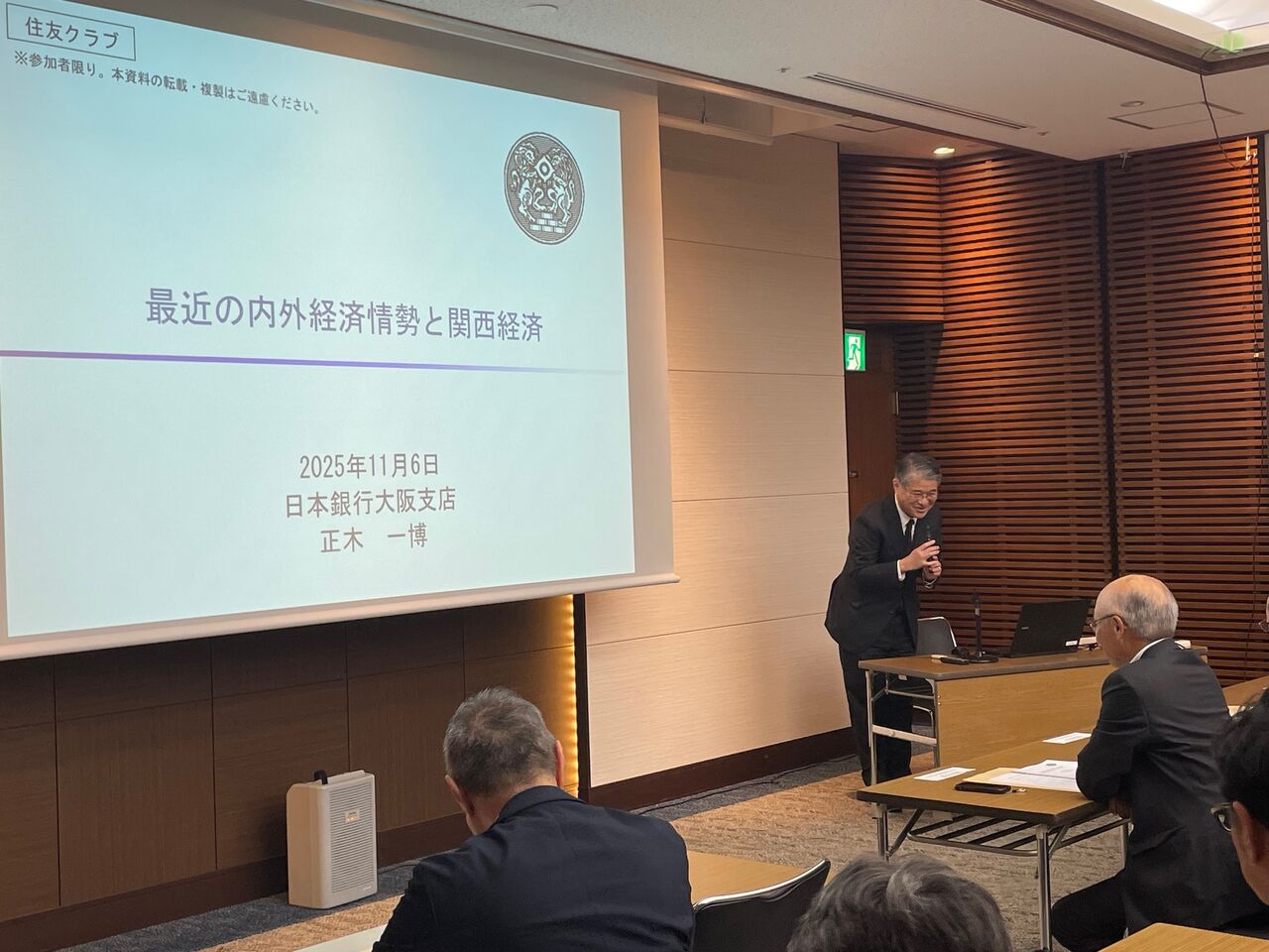 本日は11月6日(木)に開催いたしました、「日本銀行理事大阪支店長講演会」について、