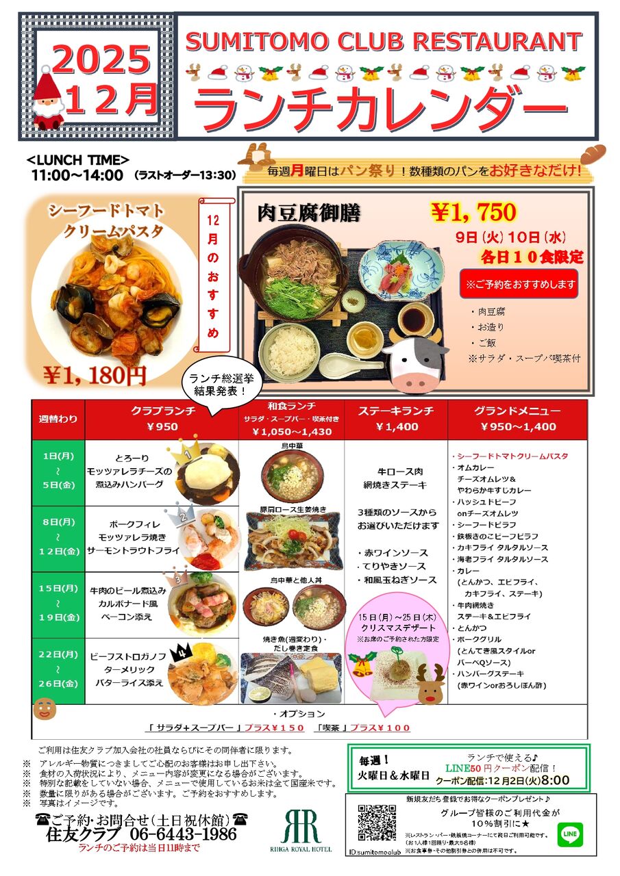 12月のクラブランチメニューは皆様の投票で決まりました