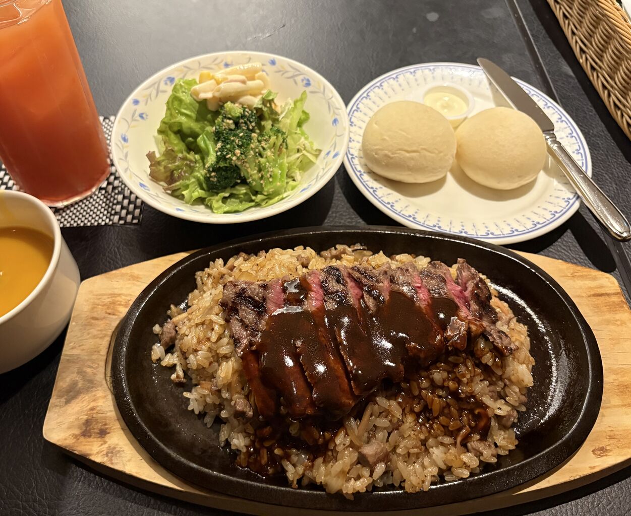 『鉄板きのこビーフピラフ黒毛和牛網焼きステーキ』をいただきました
