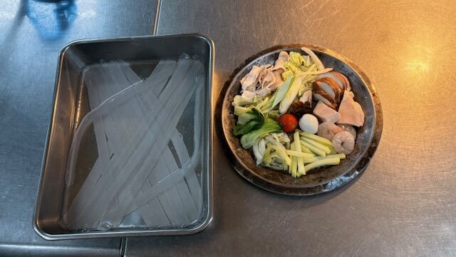 出来上がったスープと春雨に具材を盛りつけたら完成です