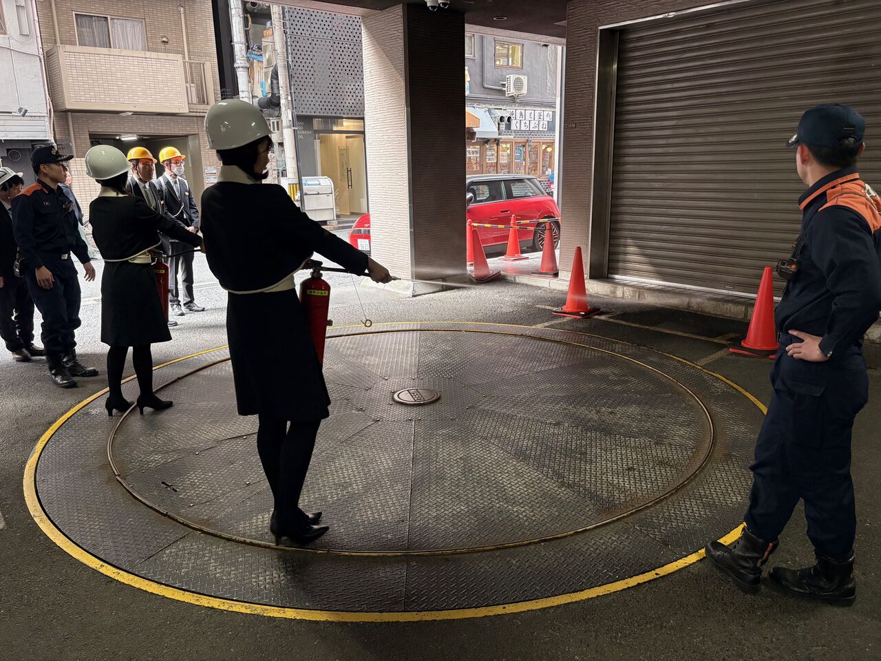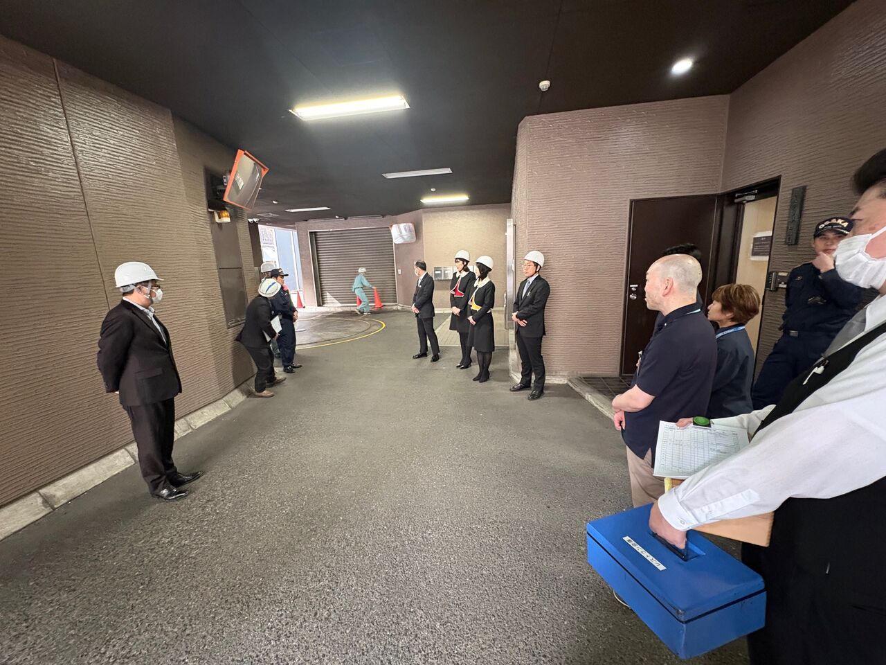 駐車場へ避難後、お客様と従業員の安否と建物・設備の被害を