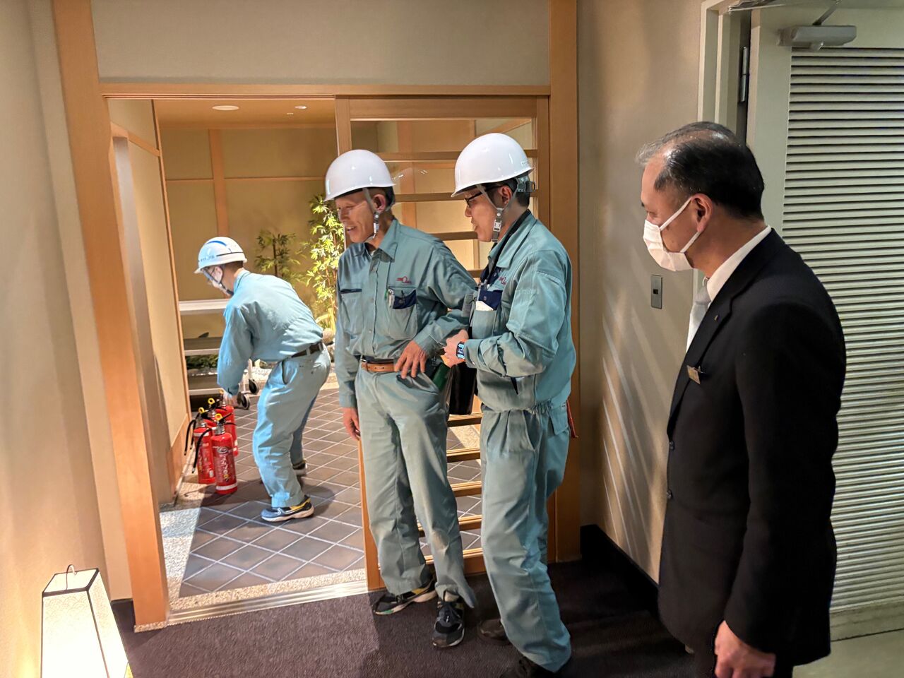 お客様やスタッフの怪我の有無、建物・設備に被害は無いかも確認します。