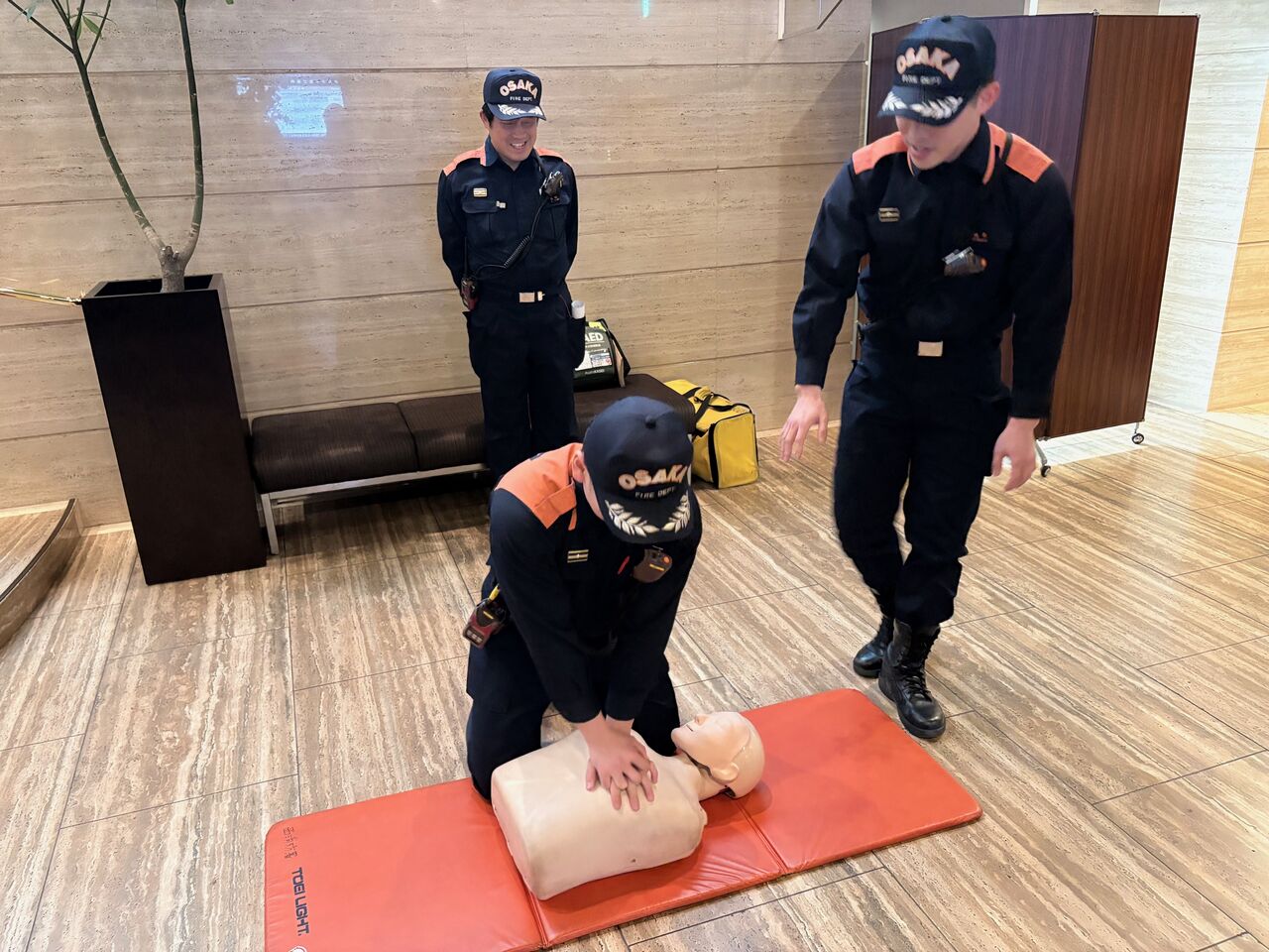 皆様の命を守る大切な訓練なのでスタッフ一同真剣に取り組みました。